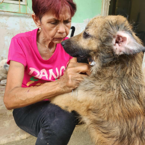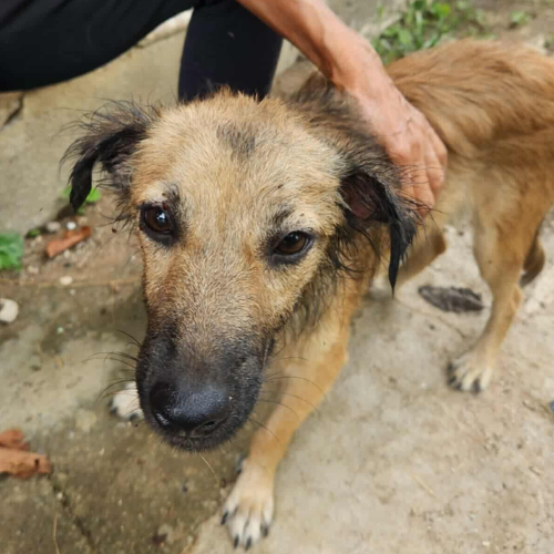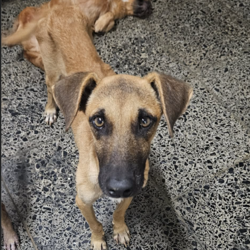 This sweet 9-month-old male pup was rescued alongside his sister after being abandoned and left to fend for themselves. When they arrived at the shelter, both were covered in ticks and in desperate need of care. With proper treatment, good food, and lots of love, he’s now happy, healthy, headed, and ready for adoption.
