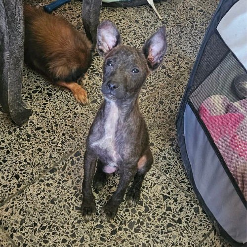 Kiko was found on the street, skinny and battling mange, but you’d never know it now! With Yadira’s care and love, he’s grown into a healthy, affectionate little shadow who follows her everywhere. When Kiko decides he loves someone, he’s all in—heart, soul, and wagging tail. This sweet boy is proof that love heals, and he’s ready to share that love with his forever family.